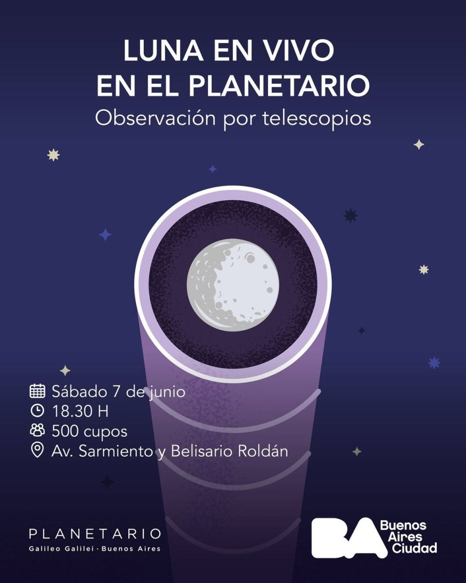 Este sábado 7 de junio, se desarrollará la actividad "Luna en vivo" donde se observará la Luna por telescopios a las 18:30 horas. Desde el espacio explicaron que se entregarán 500 números al público presente, solo 15 minutos antes del horario anunciado de inicio de la actividad.