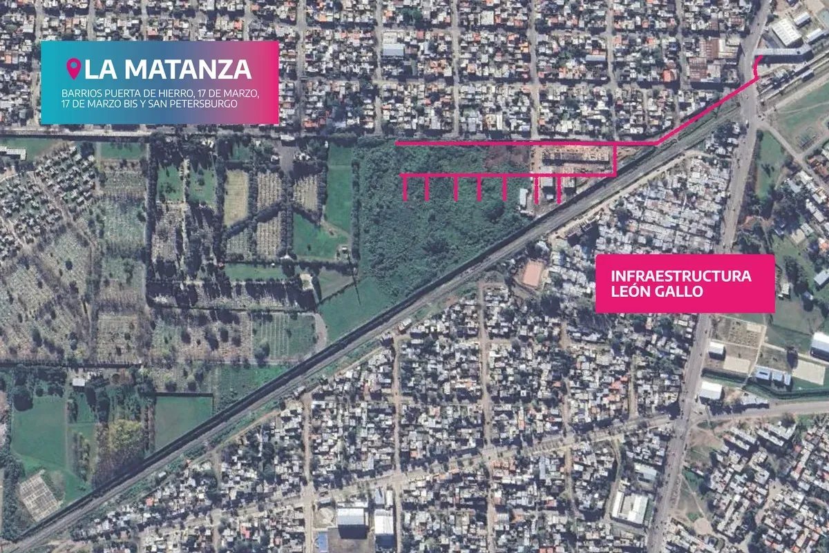 De acuerdo a los pliegos a los que accedió este medio, la intervención consiste en la construcción de las redes primarias que les permitirá dotar de ambos servicios a todos los vecinos de los barrios San Petersburgo, 17 de Marzo, 17 de Marzo Bis y Puerta de Hierro que sean reubicados en su interior.
