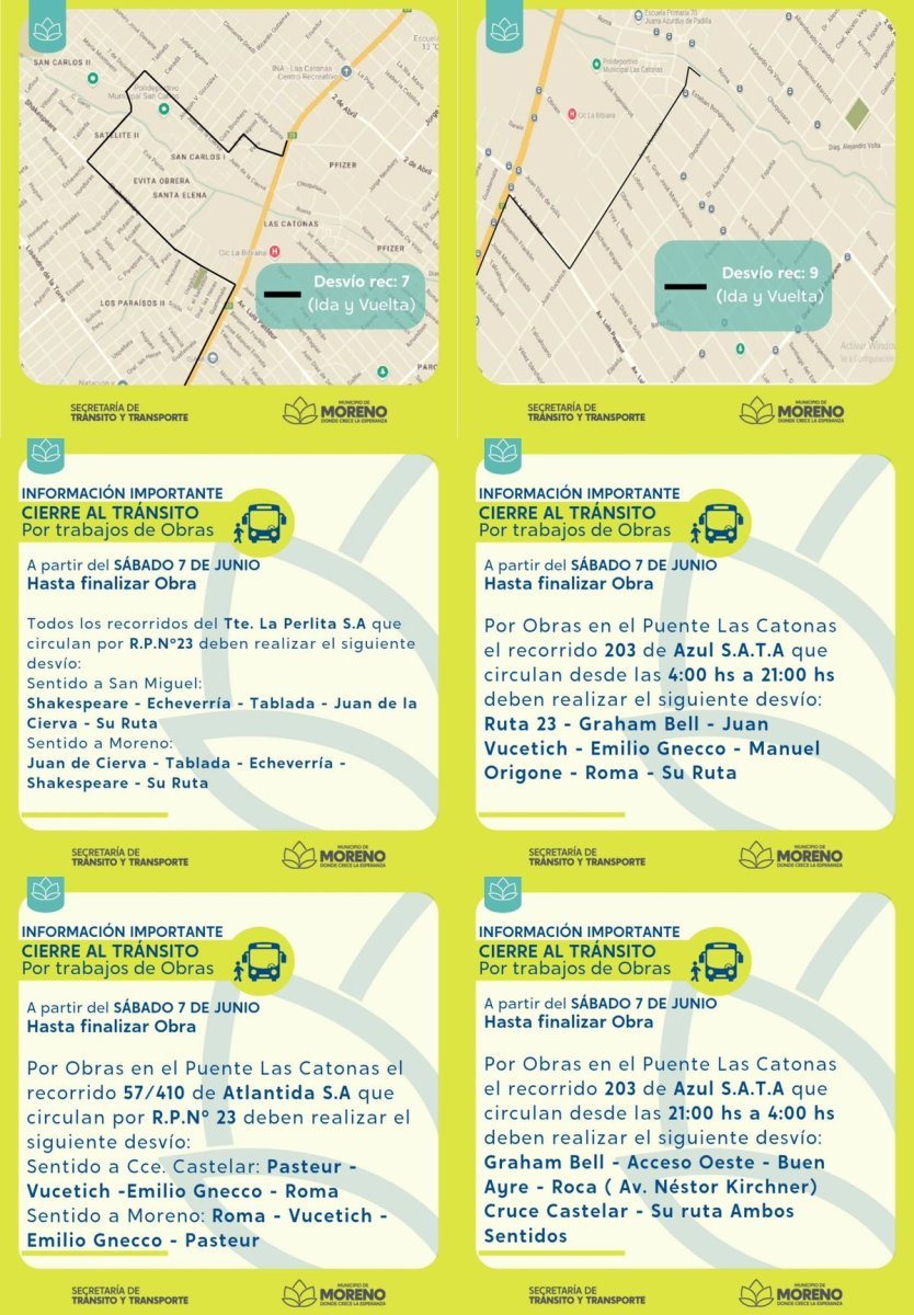A su vez, el Gobierno local informó que todos los ramales administrados por la empresa Transportes La Perlita Sociedad Anónima (SA) que pasen por esa zona usarán el mismo camino alternativo que los vehículos particulares salvo por el 9, que ingresará y saldrá al vecindario por la arteria Jorge Newbery y no por Roma.