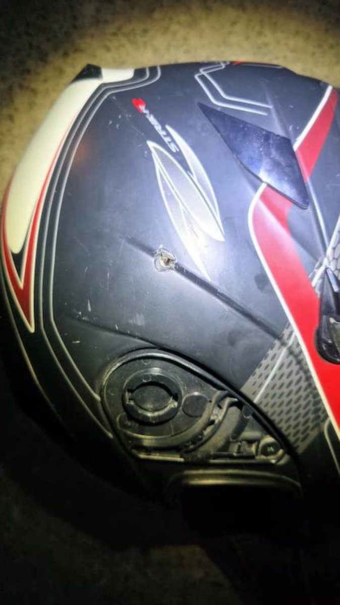 Hubo un detalle clave que salvó al damnificado de un desenlace todavía peor: el proyectil quedó alojado en el casco que llevaba puesto. Esa es la suerte que no corrió el malhechor, que pese a ser hospitalizado perdió la vida horas después debido a la magnitud de sus lastimaduras.