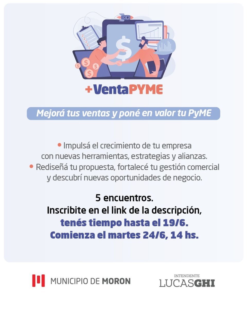 Con el fin de potenciar el crecimiento de las industrias productivas de Morón, desde el Municipio lanzaron el programa "+Venta PyME" para que las compañías vendan más, mejoren su estrategia comercial y abran nuevos mercados. La capacitación se realiza de forma presencial y es con cupos limitados.