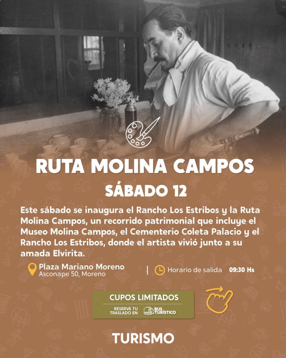 Además de esta apertura tan especial, el Gobierno local llevará a cabo el lanzamiento de una ruta centrada en el dibujante que comenzará en el museo emplazado sobre la arteria Molina Campos (ex Güemes) al 364 y seguirá en su lápida del Cementerio Municipal "Santa Coleta" antes de pasar por el citado rancho.