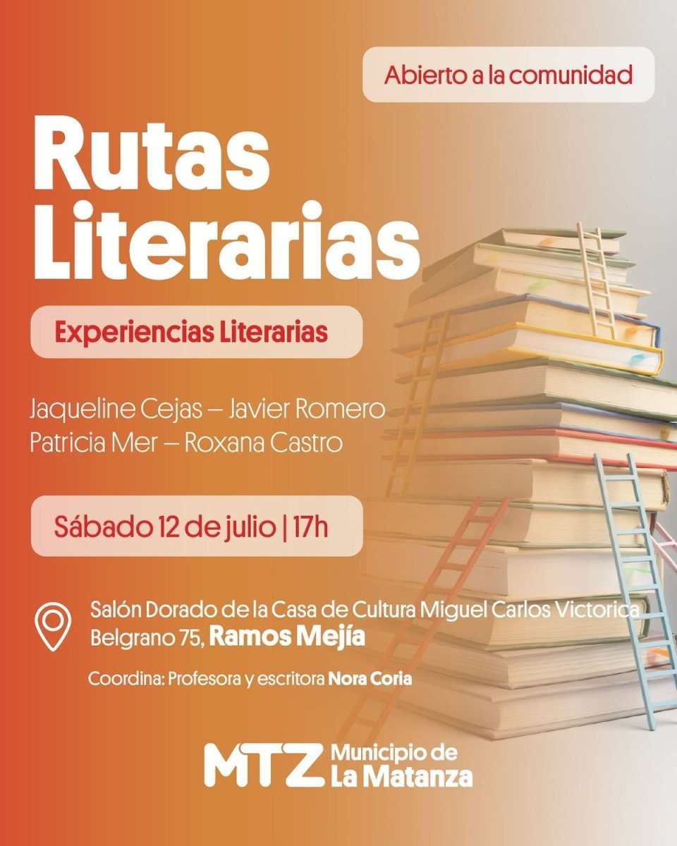 Por otro lado, el sábado 12 de julio a las 17:00 horas en la Casa de Cultura "Miguel Carlos Victorica", Belgrano 75, 1° piso (Salón Dorado), Ramos Mejía, se realizará el ciclo Rutas Literarias "un encuentro entre noveles autores que presentarán sus obras más recientes acompañados de música y narraciones", con entrada libre y gratuita.