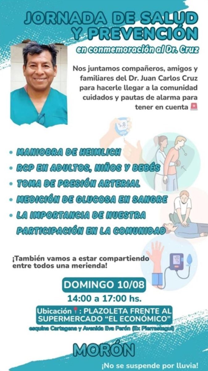 A dos años de su asesinato en Morón, una jornada de salud y prevención en homenaje al Dr. Cruz