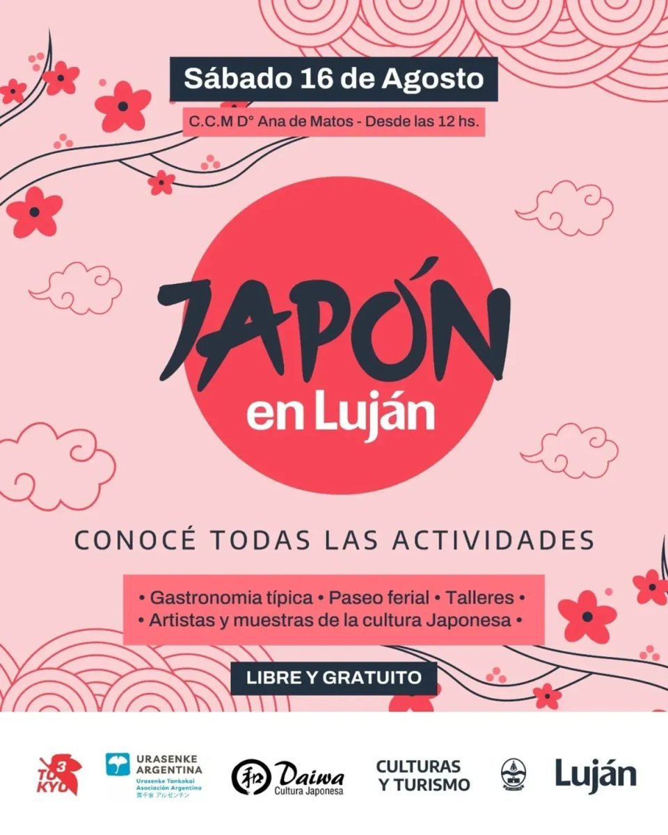 También con entrada libre y gratuita en Luján se realizará el evento "Japón en Luján" este sábado 16 de agosto desde las 12:00 horas en el Centro Cultural Municipal Doña Ana de Matos.
