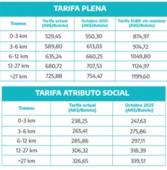 El Gobierno de la Provincia de Buenos Aires dispuso una actualización tarifaria del transporte público de pasajeros a través de la Resolución N.º 81/25. Así, para los servicios urbanos provinciales Gran Buenos Aires el boleto mínimo con SUBE costará $550,30 y sin tarjeta SUBE $874,97. En tanto, el boleto máximo saldrá con SUBE $754, 47 y sin SUBE $1199,60.