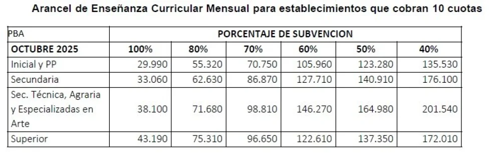 La Asociación de Institutos de Enseñanza Privada de Argentina (Aiepa) informó a todos sus asociados que las autoridades de la Provincia de Buenos Aires (PBA) y la Ciudad Autónoma (CABA) autorizaron nuevos cuadros tarifarios que regirán desde octubre en los establecimientos que reciben aportes estatales para afrontar parte de los gastos de funcionamiento.