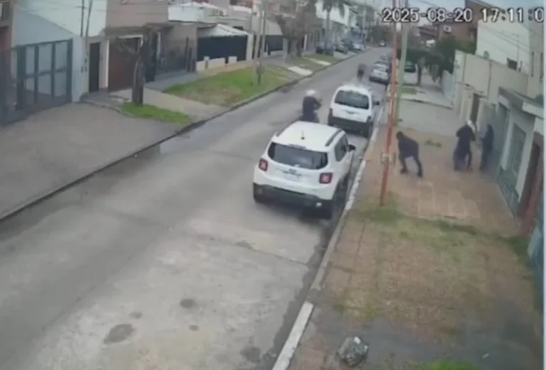 El asalto quedó registrado por las cámaras de seguridad de las casas de la zona y dura tan solo 45 segundos. En el video se observa que el vecino estaciona su auto un Volkswagen gol trend en la puerta de su domicilio sobre la calle Bolívar al 2300 a las 17 horas.