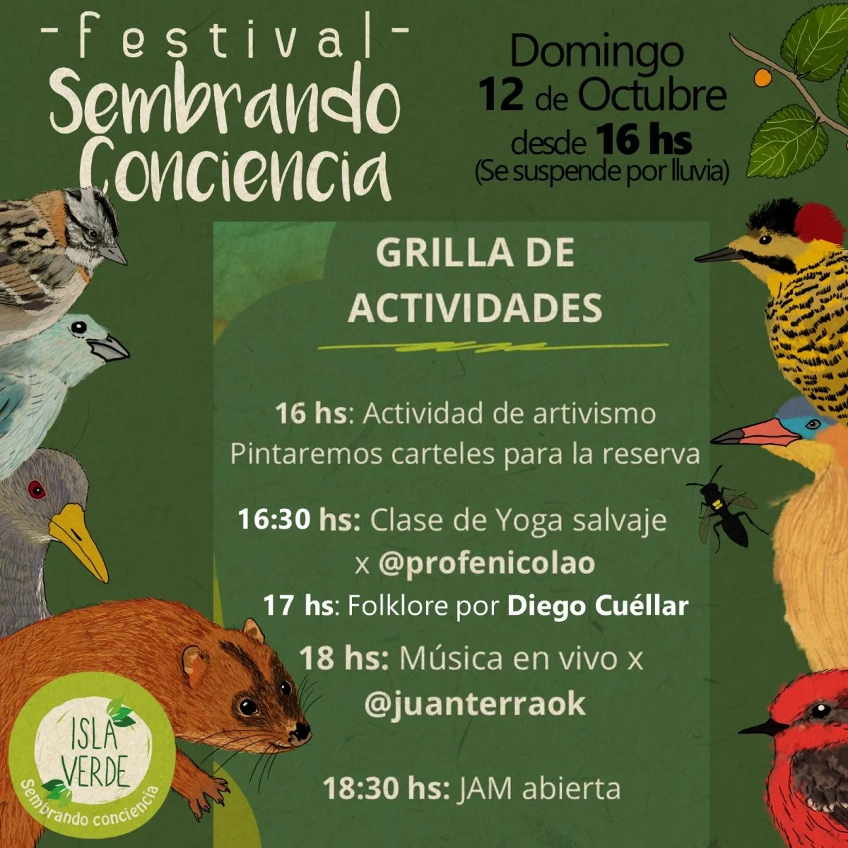 La cita será este sábado 11 y domingo 12 de octubre en la Plaza de la Naturaleza, ubicada en Derqui y Corvalán, frente a la entrada de la reserva. En diálogo con Viví el Oeste diario, Nahuel, uno de los fundadores de la ONG, explicó que "el sábado hacemos avistaje de aves, desde las 09:00 horas, y el domingo hacemos el festival ambiental "sembrando conciencia" desde las 16:00 horas".