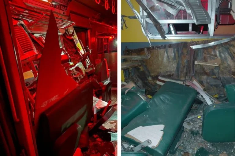 Si bien el impacto fue lateral, las imágenes registradas muestran que los daños materiales fueron importantes. En ellas se observan hierros retorcidos y asientos destrozados, además se produjo un corte de suministro eléctrico en el interior de los trenes.
