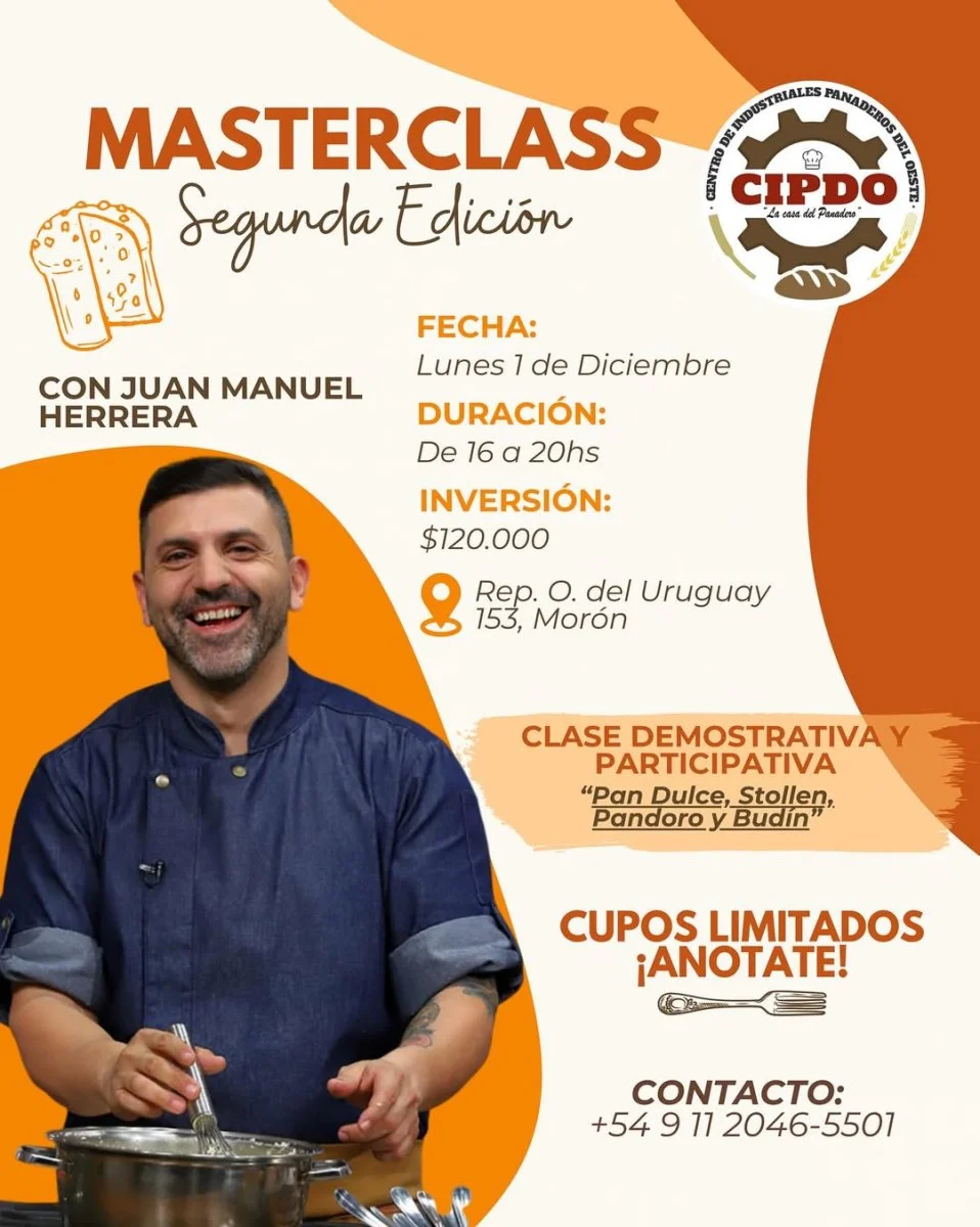 En conjunto con Juan Manuel Herrera, llega una segunda edición masterclass donde los presentes podrán elaborar pan dulce, stollen, pandoro y budín. La clase tiene un valor de $120.000, y será el lunes 1 de diciembre, de 16:00 a 20:00 horas, en República Oriental del Uruguay 153, Morón.