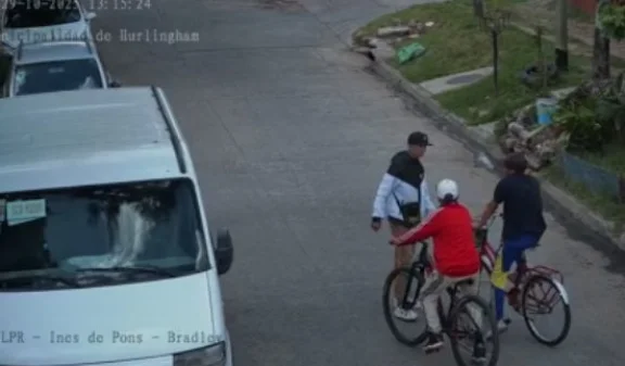 Tres personas, que en principio se estima serían amigos, circulaban en bicicleta cuando dos de ellos mantuvieron una discusión y uno mató al otro de dos disparos a plena luz del día en Hurlingham, y todo quedó grabado por las cámaras de seguridad del Municipio.