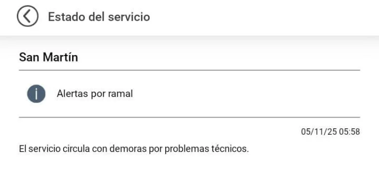 La mañana fresca comenzó con complicaciones para los usuarios del Tren San Martín, luego de que desde Trenes Argentinos comunicaron que las formaciones de dicha línea circulan con demoras por inconvenientes técnicos. Por el momento, no indicaron cuando se normalizará el servicio.