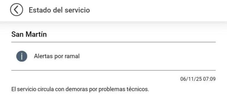 En concreto, desde Trenes Argentinos indicaron que "el servicio circula con demoras por problemas técnicos", y pidieron disculpas por las molestias ocasionadas a los pasajeros.
