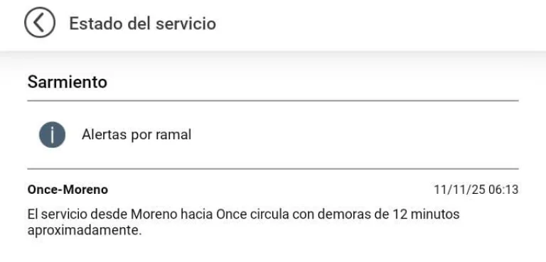 De esta manera, indicaron que para el servicio Once - Moreno "el servicio desde Moreno hacia Once circula con demoras de 12 minutos aproximadamente", y pidieron disculpas por las molestias ocasionadas a los pasajeros.
