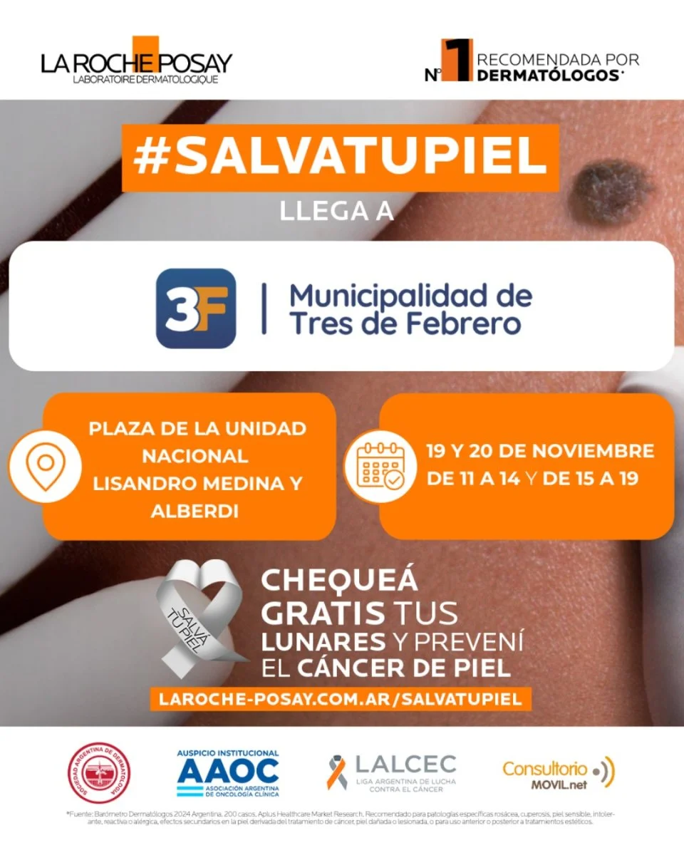 "Salva tu piel llega a Tres de Febrero para cuidarte de la mano de La Roche-Posay", expresaron desde el Gobierno local e indicaron que llega una nueva edición de esta campaña de concientización sobre el cáncer de piel, donde la comunidad podrá chequear sus lunares.