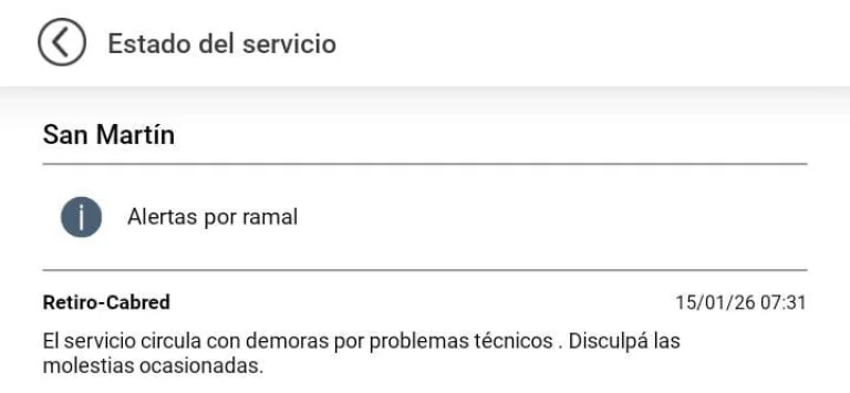 Al igual que en la jornada de ayer, la mañana de se complicó para los usuarios del Tren San Martín, luego de que desde Trenes Argentinos comunicaron que las formaciones de dicha línea circula con algunas demoras por inconvenientes técnicos.