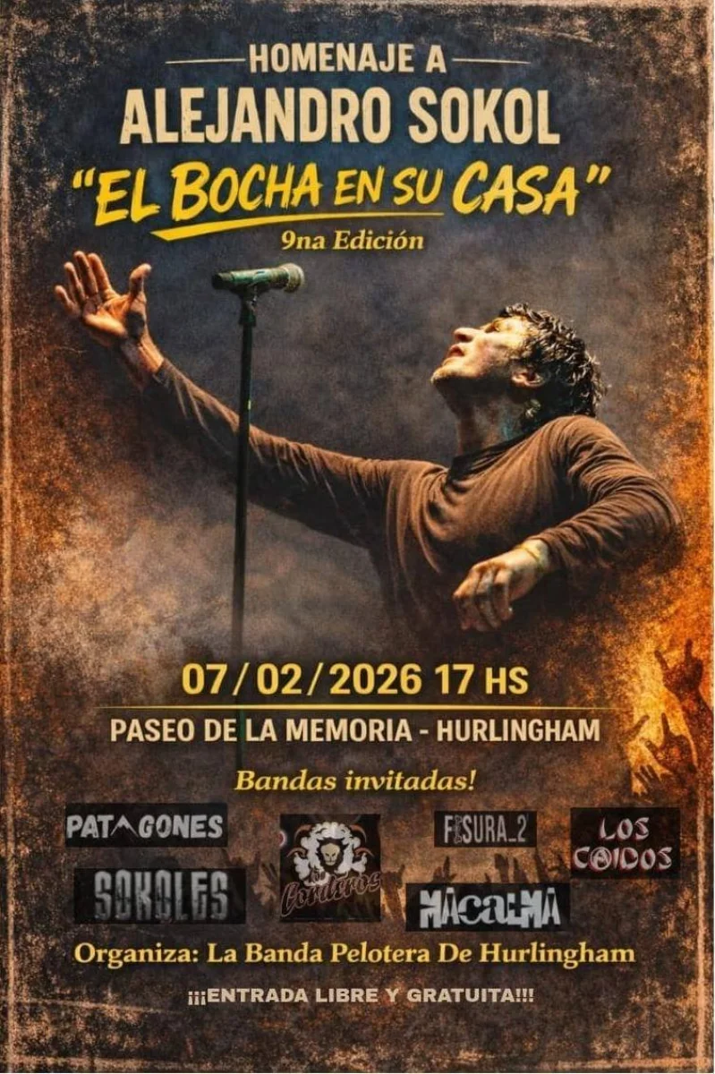 Festival en homenaje a Alejandro Sokol en Hurlingham con bandas invitadas.