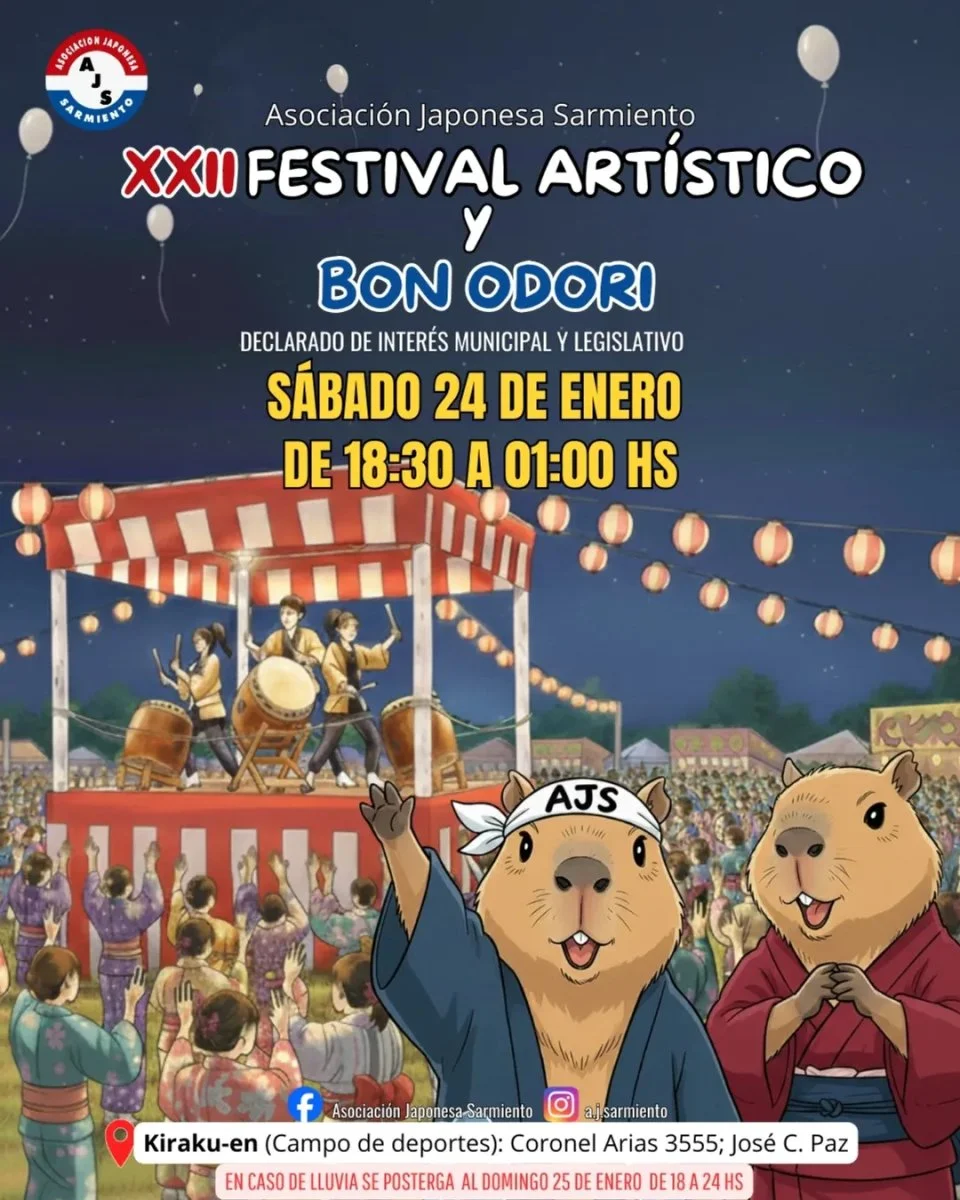 La cultura japonesa tendrá su gran noche en José C. Paz con la realización del Bon Odori, una festividad tradicional que se celebra en Japón durante el verano y que invita a honrar a las almas de quienes ya no están a través de la música, el baile y el encuentro comunitario. El evento se llevará a cabo este sábado 24 de enero, de 18:30 a 01:00 horas, en Kiraku-en, ubicado en Coronel Arias 3555.