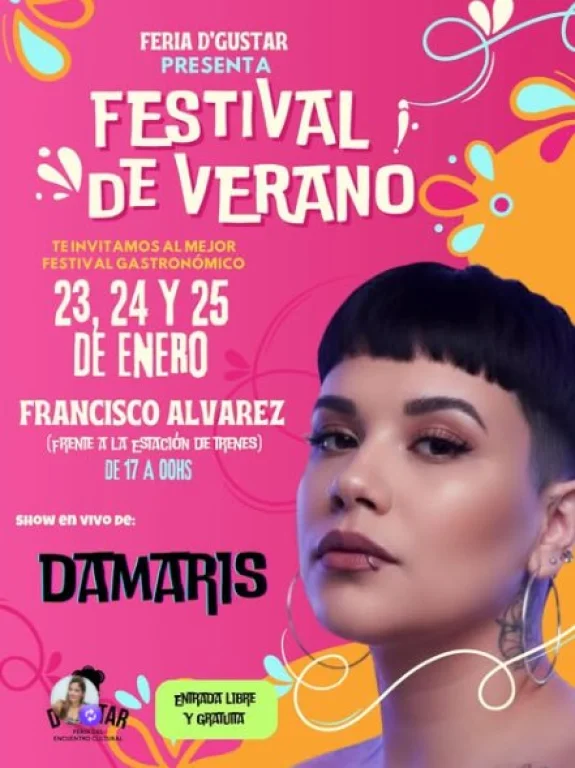 Este fin de semana, en la estación Francisco Álvarez (Ruta 5 y Mamerto Esquiu) se realizará el Festival de Verano, en conjunto con la feria gastronómica D'gustar donde combinarán platos de todo el mundo y shows musicales para disfrutar en familia.