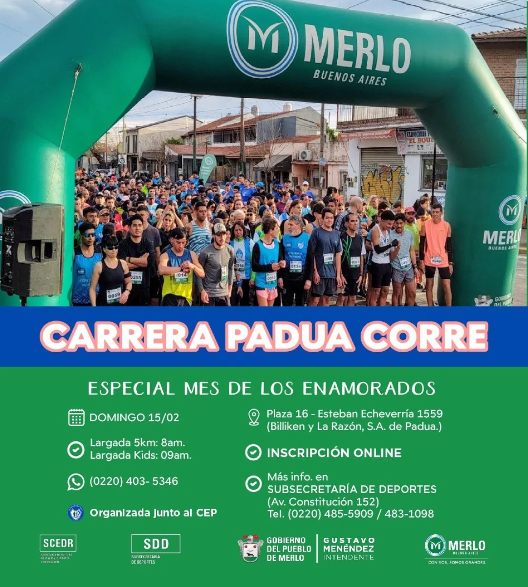 A través de sus redes sociales, desde la Secretaría de Deportes de Merlo anunciaron que el próximo mes llega una nueva edición de la carrera Padua Corre para que la comunidad pueda vivir una jornada deportiva a lo grande.