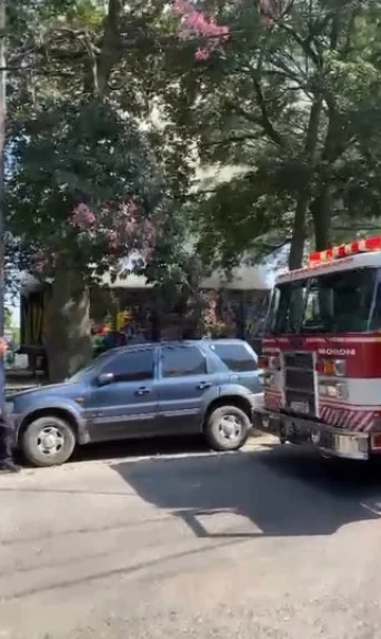 Las llamas se extendieron rápidamente por el vagón de madera y los bomberos voluntarios de Morón trabajaron para lograr extinguir en fuego en la plaza de Castelar.