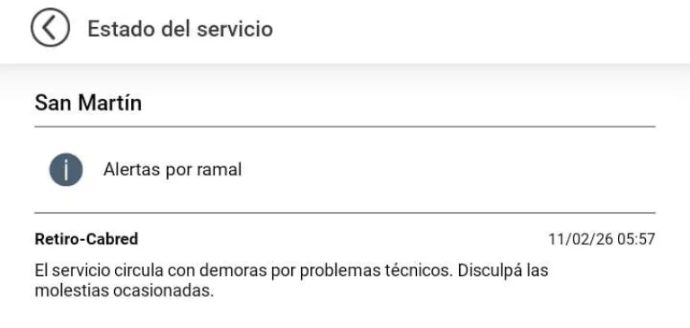 Desde Trenes Argentinos indicaron que los retrasos en el Tren San Martín, se deben a inconvenientes técnicos. Por el momento, los demás trenes funcionan con normalidad.