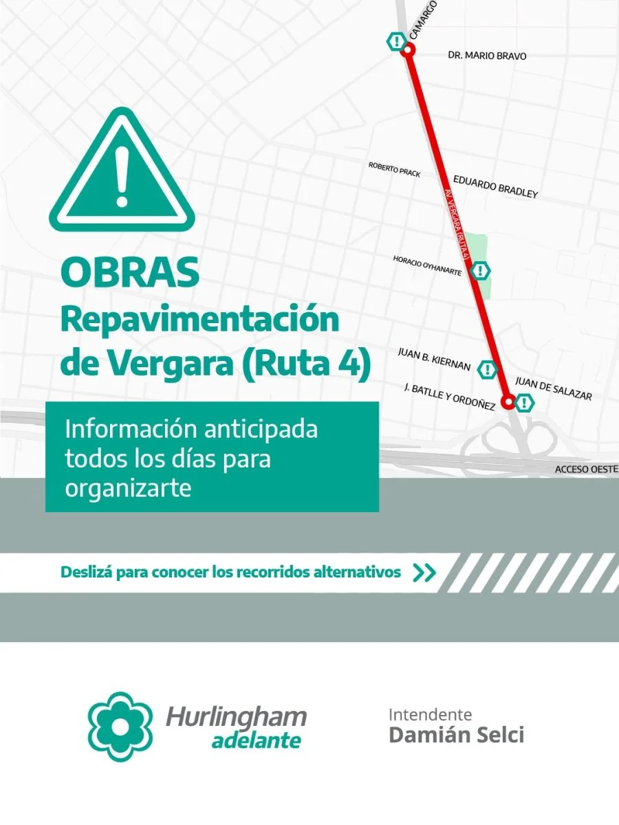 Desde el Municipio de Hurlingham anunciaron cuáles son los accesos para entrar y salir del partido en medio de las obras que se realizan en Av. Vergara.