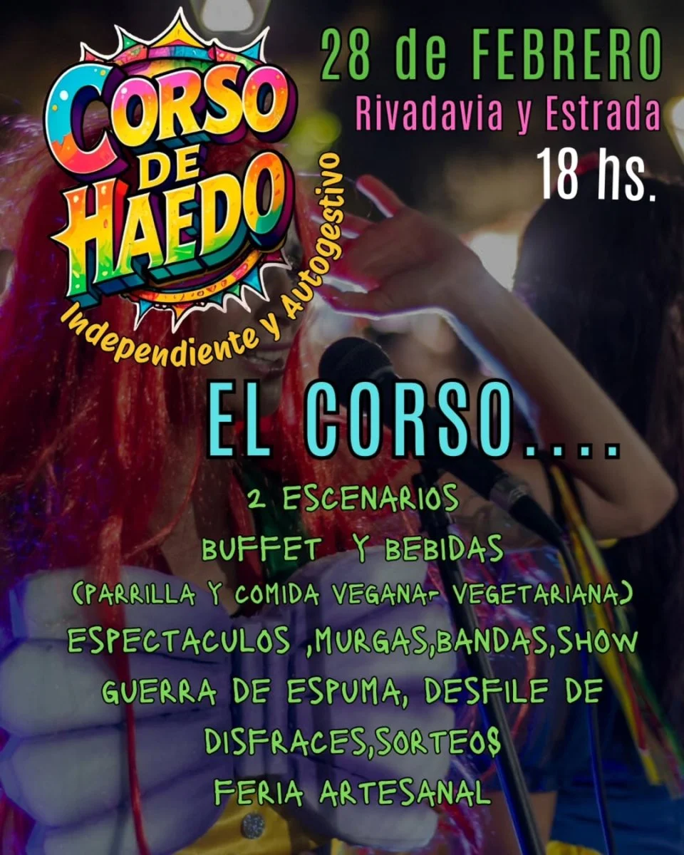 Además, sostuvo que "la propuesta del corso de Haedo, es por y para el barrio, por eso, en plena Avenida Rivadavia, se van a encontrar con dos escenarios funcionando en simultaneo, buffet con parrilla y opciones veggies. Espectáculos para infancias, murgas, bandas y diversos shows en vivo. Guerra de espuma, desfile de disfraces (quien quiera, puede venir con su disfraz) sorteos, y una feria artesanal hermosa para recorrer. Pero por, sobre todo, se van a encontrar con pura alegría y fiesta popular".