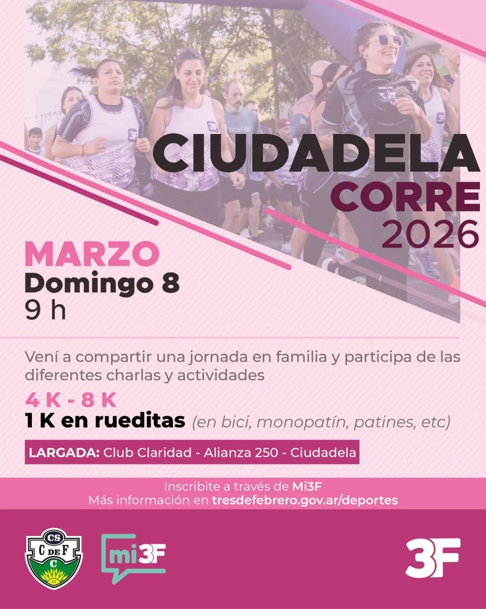 La actividad tendrá como punto de partida el Club Claridad de Ciudadela, ubicado en Alianza 250, y marcará la primera carrera del año en el distrito. Como en ediciones anteriores, habrá varias distancias para que puedan participar corredores de diferentes edades y niveles.