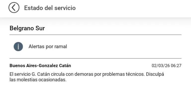 En concreto, desde la empresa estatal explicaron que en el ramal Buenos Aires - González Catán "el servicio de González Catán circula con demoras por problemas técnicos", y pidieron disculpas por las molestias ocasionadas.