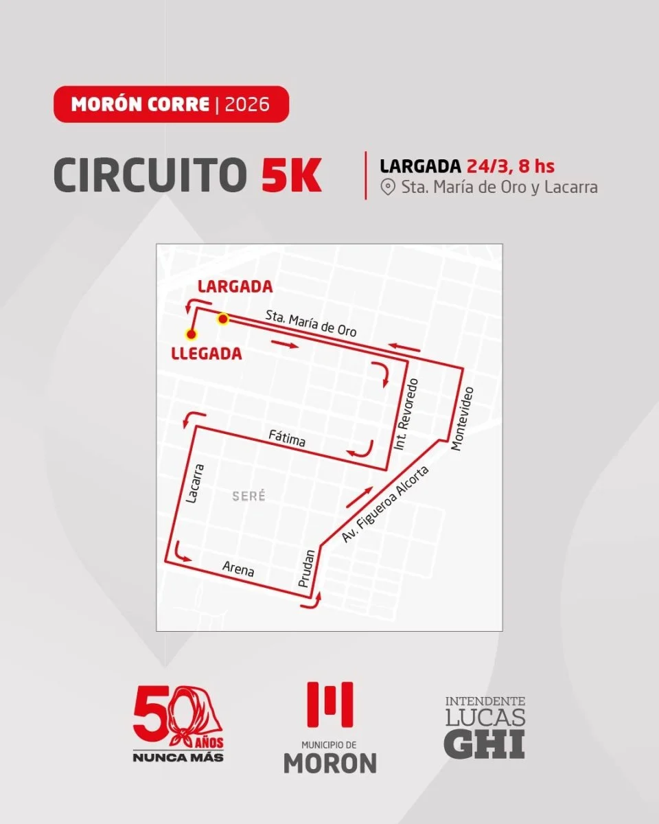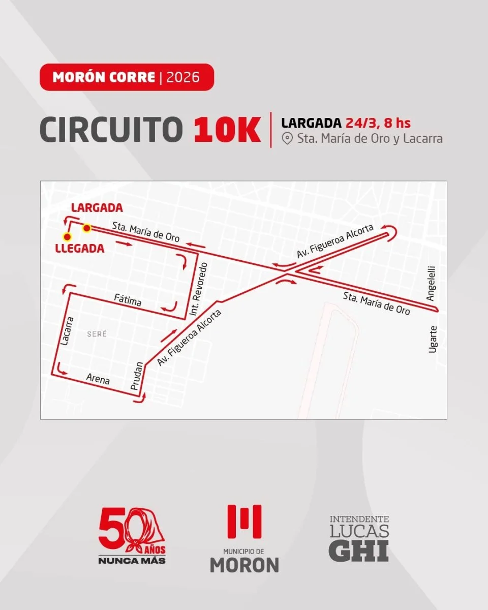 Al igual que todos los años, el Municipio de Morón informó que la maratón por la Memoria, la Verdad y la Justicia se realizará el próximo martes 24 de marzo con modalidades 10K y 5K, y abierta a toda la comunidad.