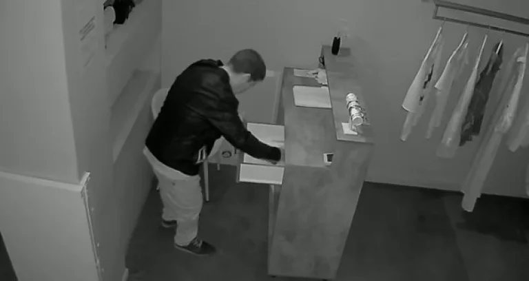 Al percibirse observados, dejaron una caja de cartón en la vereda, se abrazaron y simularon caminar alcoholizados alejándose del lugar. Más tarde, a las 05:00 horas, uno de los hombres que rompió los candados regresó junto a una mujer, que simulaba hablar por teléfono y ser su pareja.