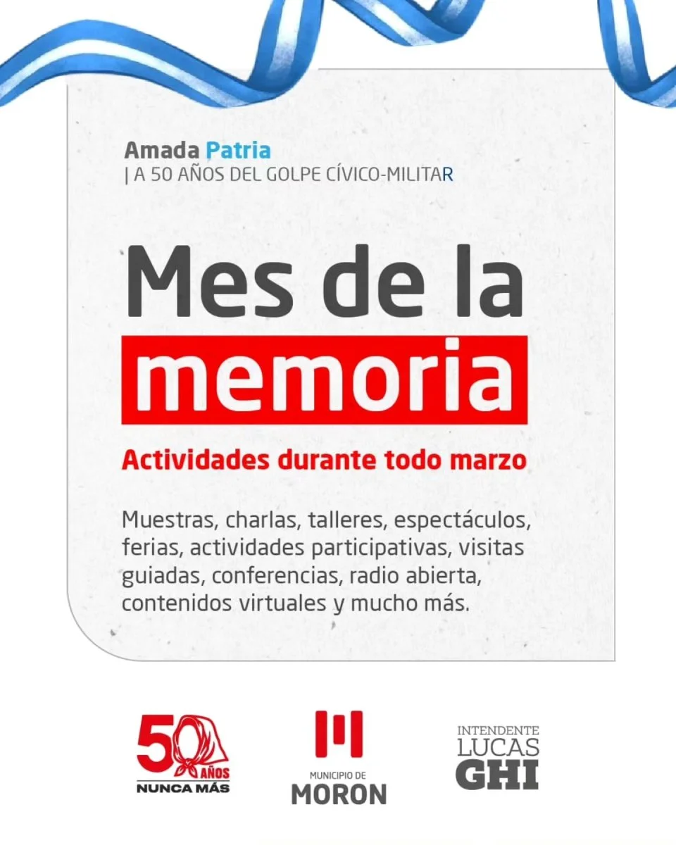 El próximo 24 de marzo se conmemora el Día Nacional de la Memoria por la Verdad y la Justicia en Argentina, y este 2026 se cumple 50 años del golpe cívico militar. Frente a esto, en diferentes puntos de Zona Oeste se realizarán actividades gratuitas para la comunidad.