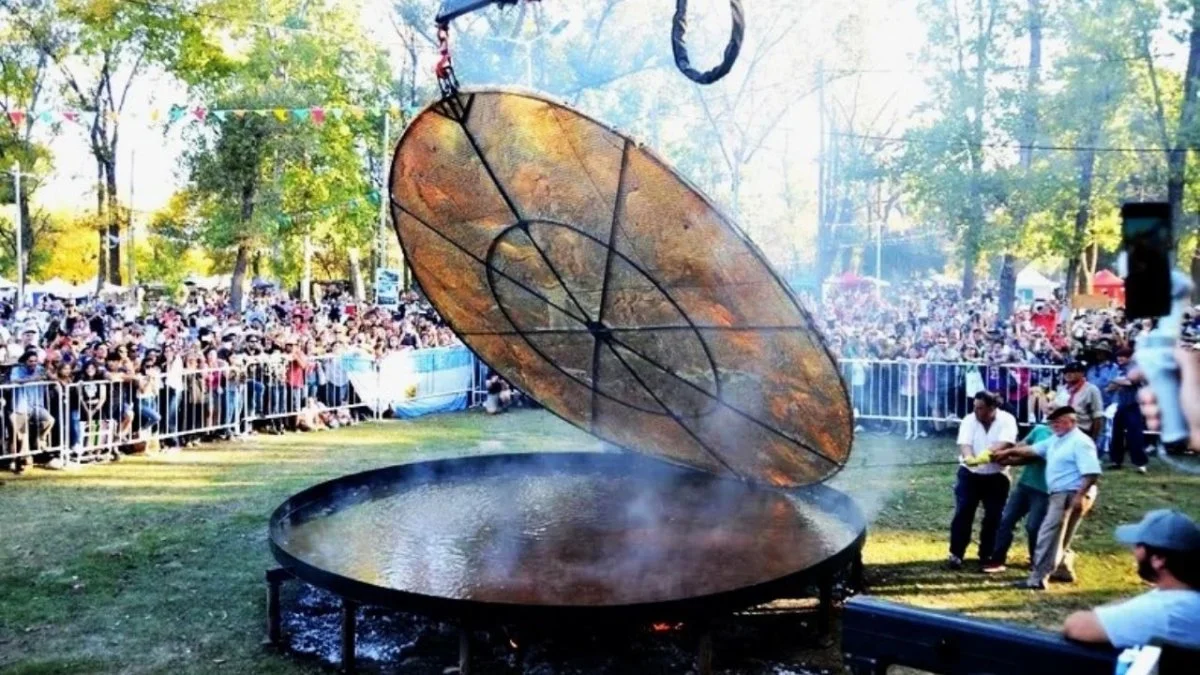 Uno de los momentos más esperados es la elaboración de la torta frita gigante, que requiere un importante trabajo colectivo. La preparación comienza el mismo día del evento y demanda varias horas de amasado. Para su cocción, se utilizan alrededor de 120 kilos de harina, entre 50 y 60 litros de agua y cerca de 2.000 kilos de grasa. Incluso, para poder girarla durante la fritura, es necesario utilizar una grúa.