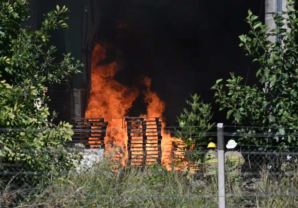 Se reactivó el incendio en el depósito de Francisco Álvarez y lograron contenerlo.