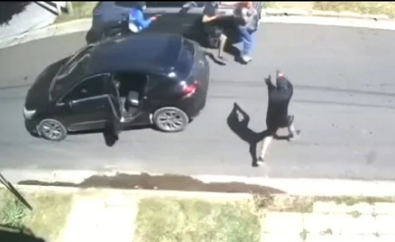 Según se observa en el video, un automóvil oscuro se detuvo junto a la víctima, que se encontraba al lado de su auto estacionado. De inmediato descendieron tres hombres armados, mientras un cuarto permaneció al volante.