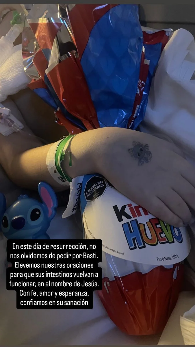 A través de sus redes, Macarena expresó el difícil momento que atraviesan y volvió a pedir por la salud de su hijo: "Seguimos pidiendo por Basti. En este día de resurrección, no nos olvidemos de pedir por Basti. Elevemos nuestras oraciones para que sus intestinos vuelvan a funcionar, en el nombre de Jesús. Con fe, amor y esperanza, confiamos en su sanación".