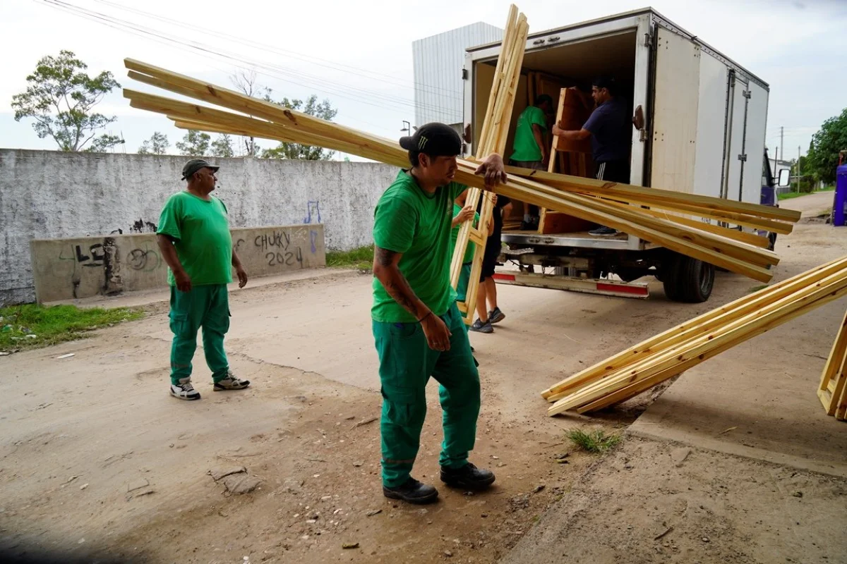 En paralelo, también se entregaron materiales de construcción como chapas y tirantes para reparar viviendas que sufrieron daños parciales.