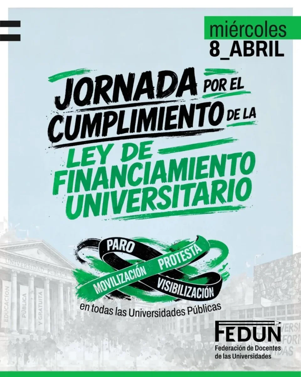 Desde la Federación de Docentes de las Universidades exigen el cumplimiento inmediato de la Ley de Financiamiento Universitario, vigente y ratificada por la Justicia, y la "urgente convocatoria a paritaria nacional para recomponer el salario".