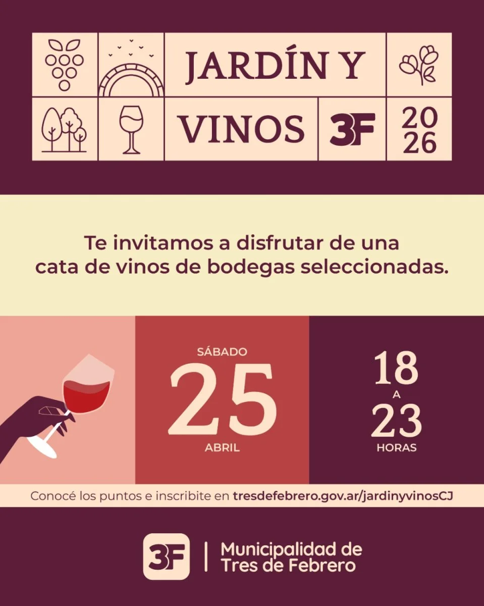 Una vez más, el partido de Tres de Febrero será escenario de la 3° edición de "Jardín y Vinos", una experiencia sensorial que combina lo mejor del vino, exquista gastronomía y el encanto de Ciudad Jardín