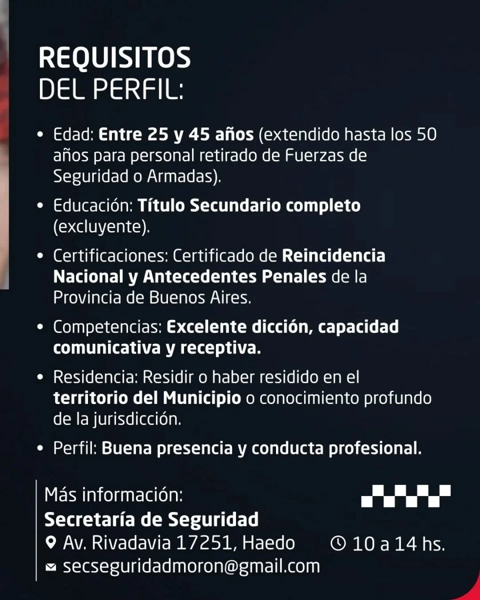 Requisitos para ser parte de la Policía Municipal de Morón: