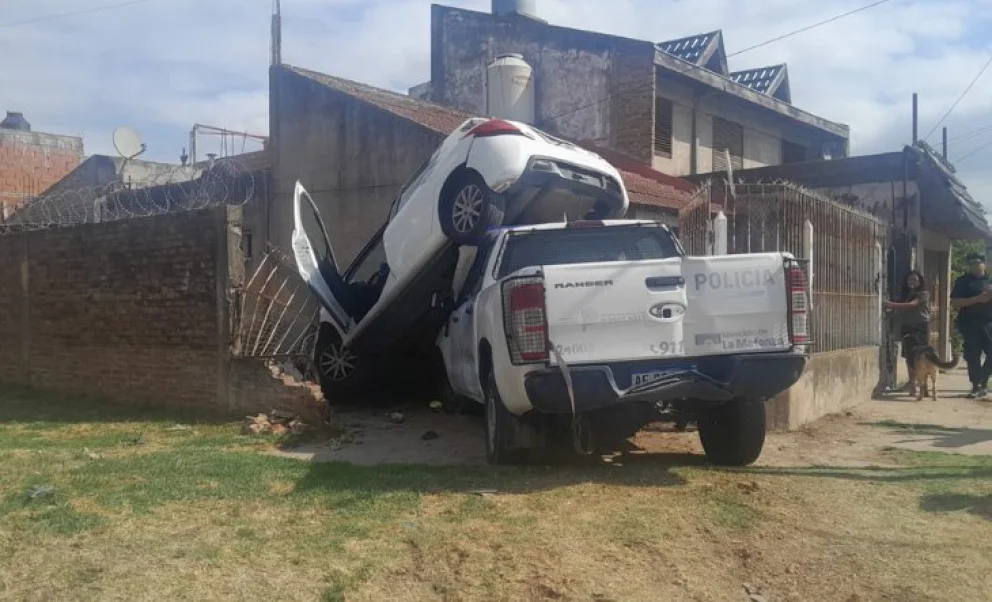 Persecución y choque en La Matanza: un auto y un patrullero terminaron incrustados en una casa