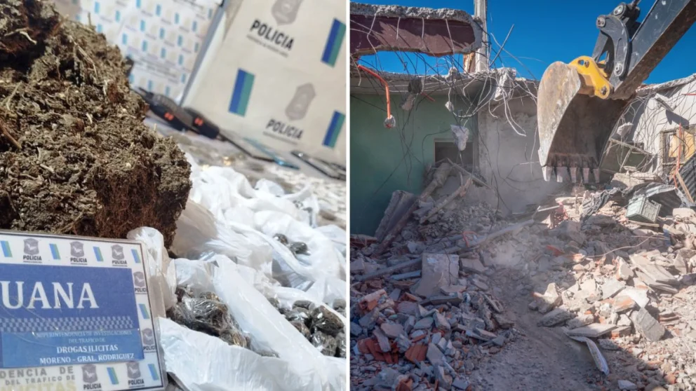 Primer búnker de droga demolido en Moreno tras la nueva ordenanza de derrumbes